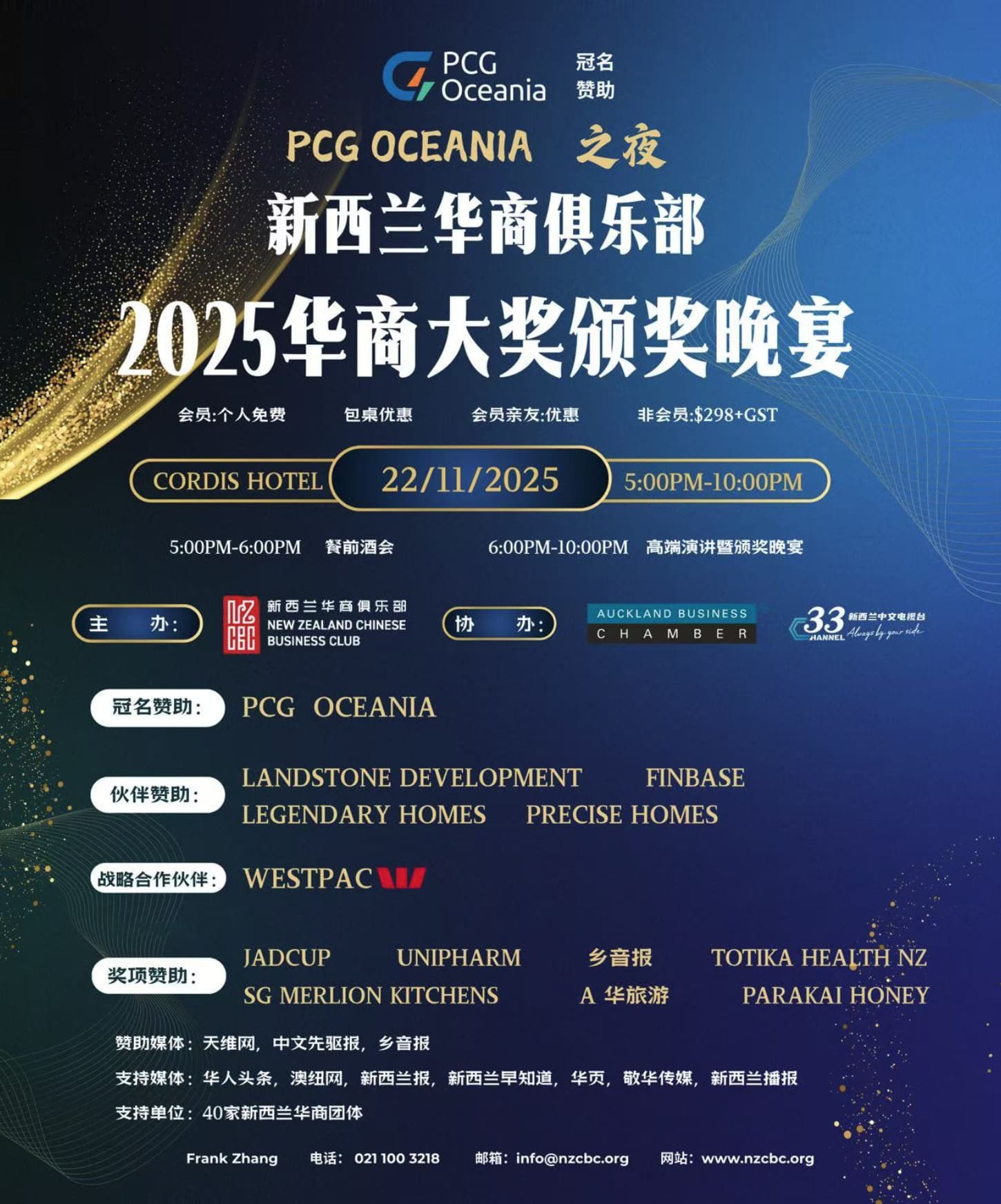 新西兰华商俱乐部2025华商大奖入围名单揭晓